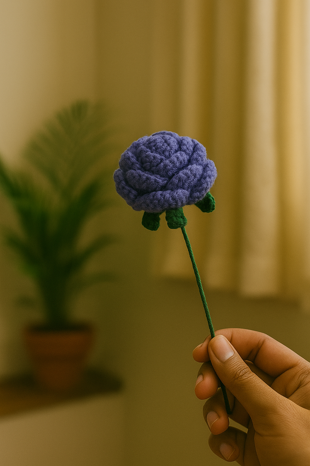 Transform any space with this exquisite handcrafted crochet rose, meticulously created with blue yarn and...