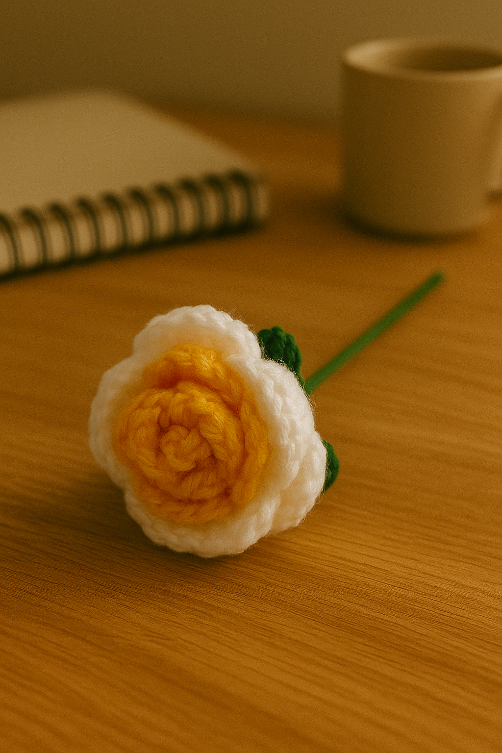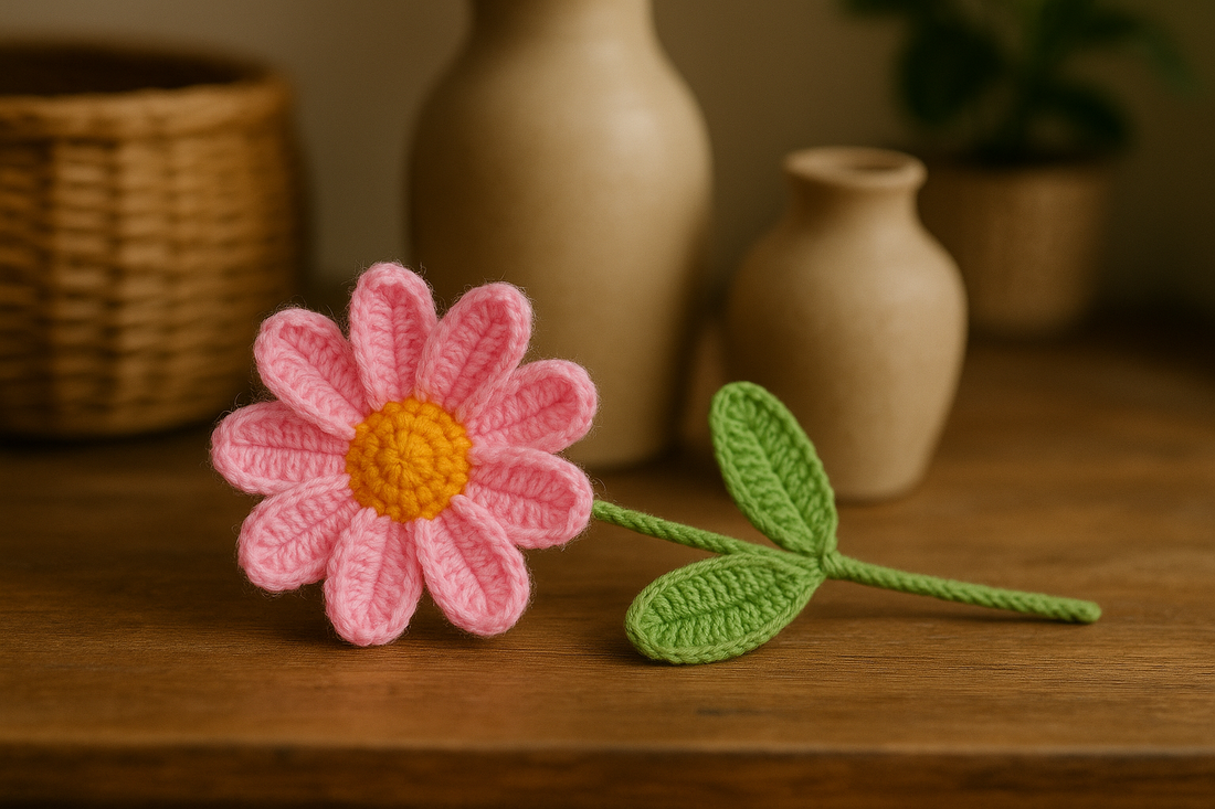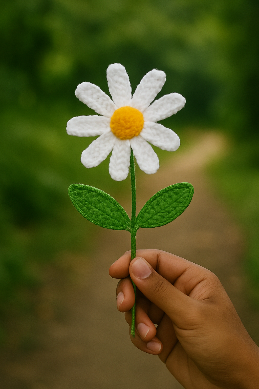 Clapjoy Handcrafted Crochet Daisy Flower with Stem & Leaves – A Timeless Symbol of Love...