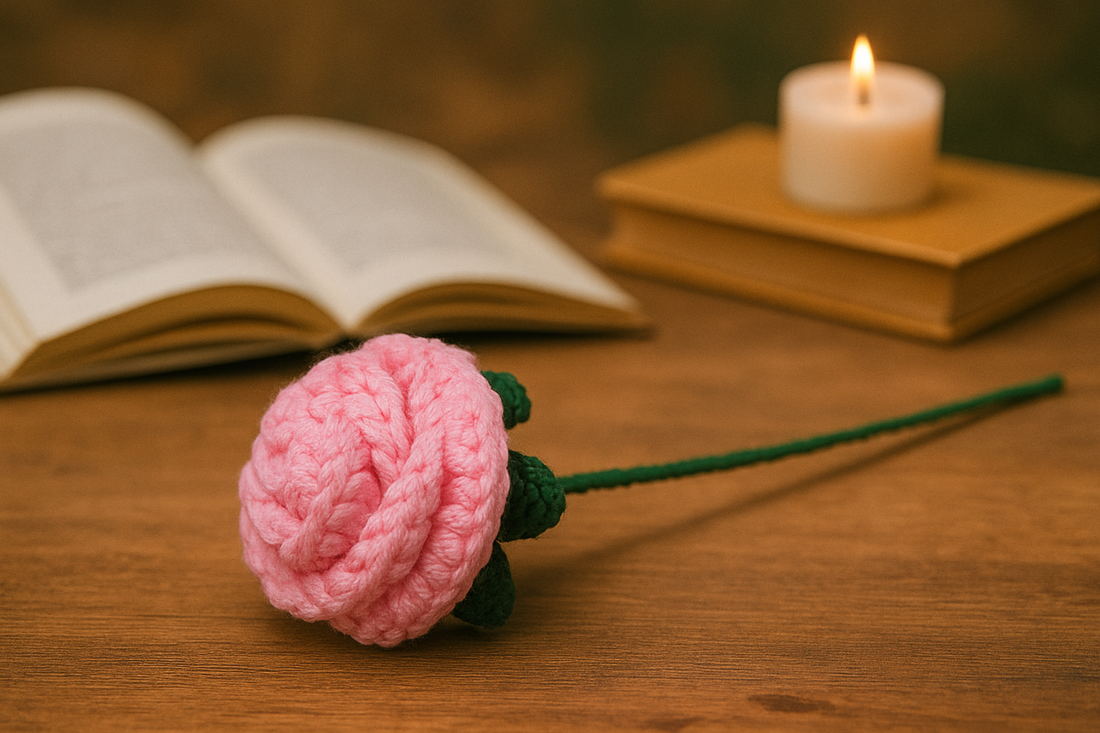 Transform any space with this exquisite handcrafted crochet rose, meticulously created with pink yarn and...