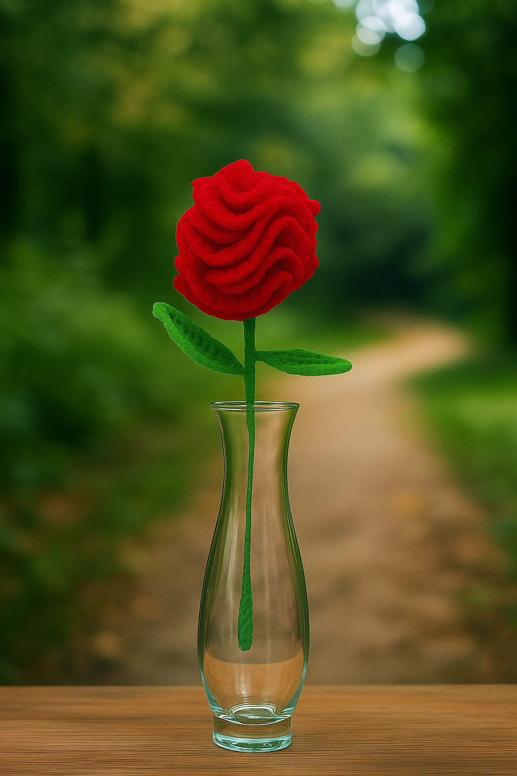 Transform any space with this exquisite handcrafted crochet rose, meticulously created with deep red yarn...