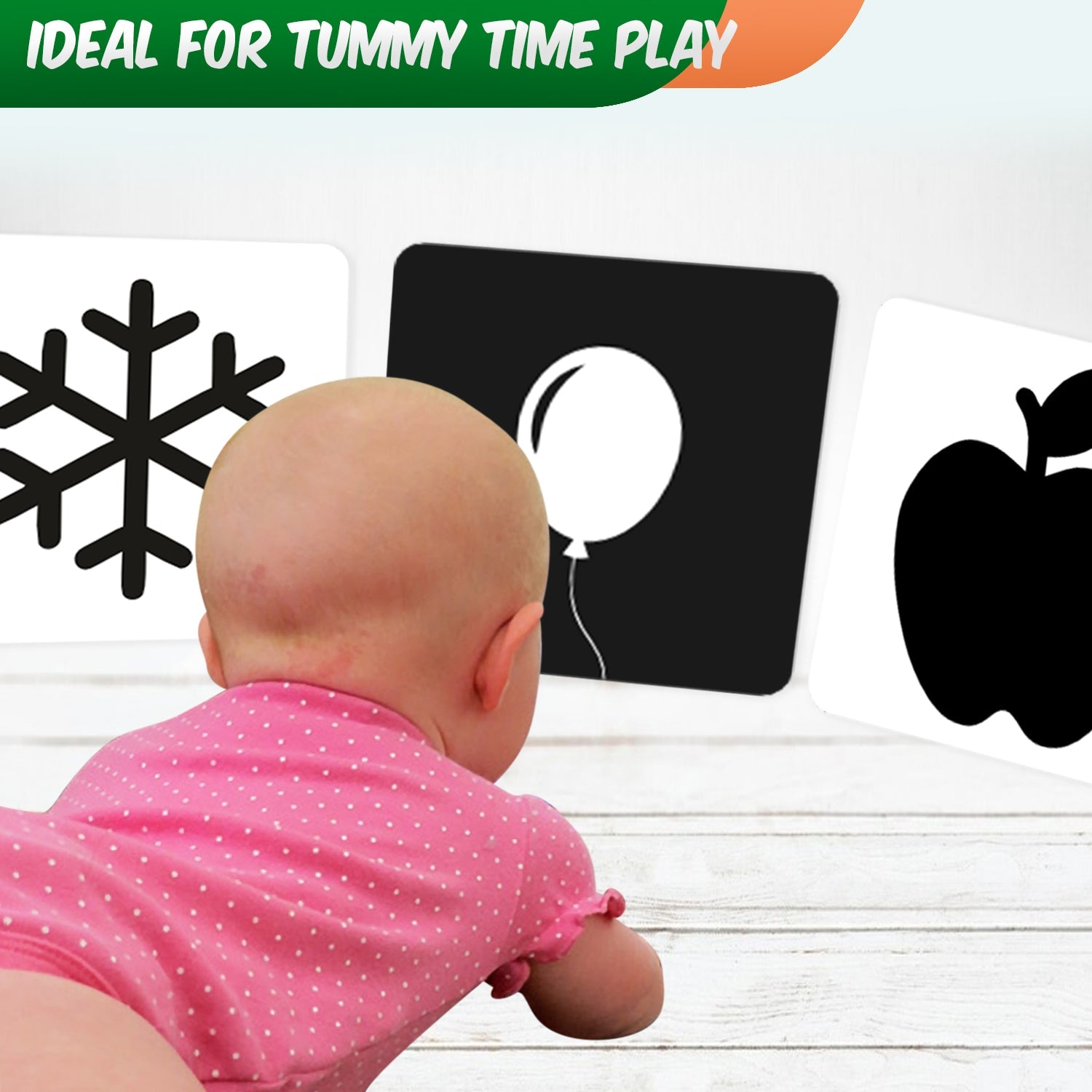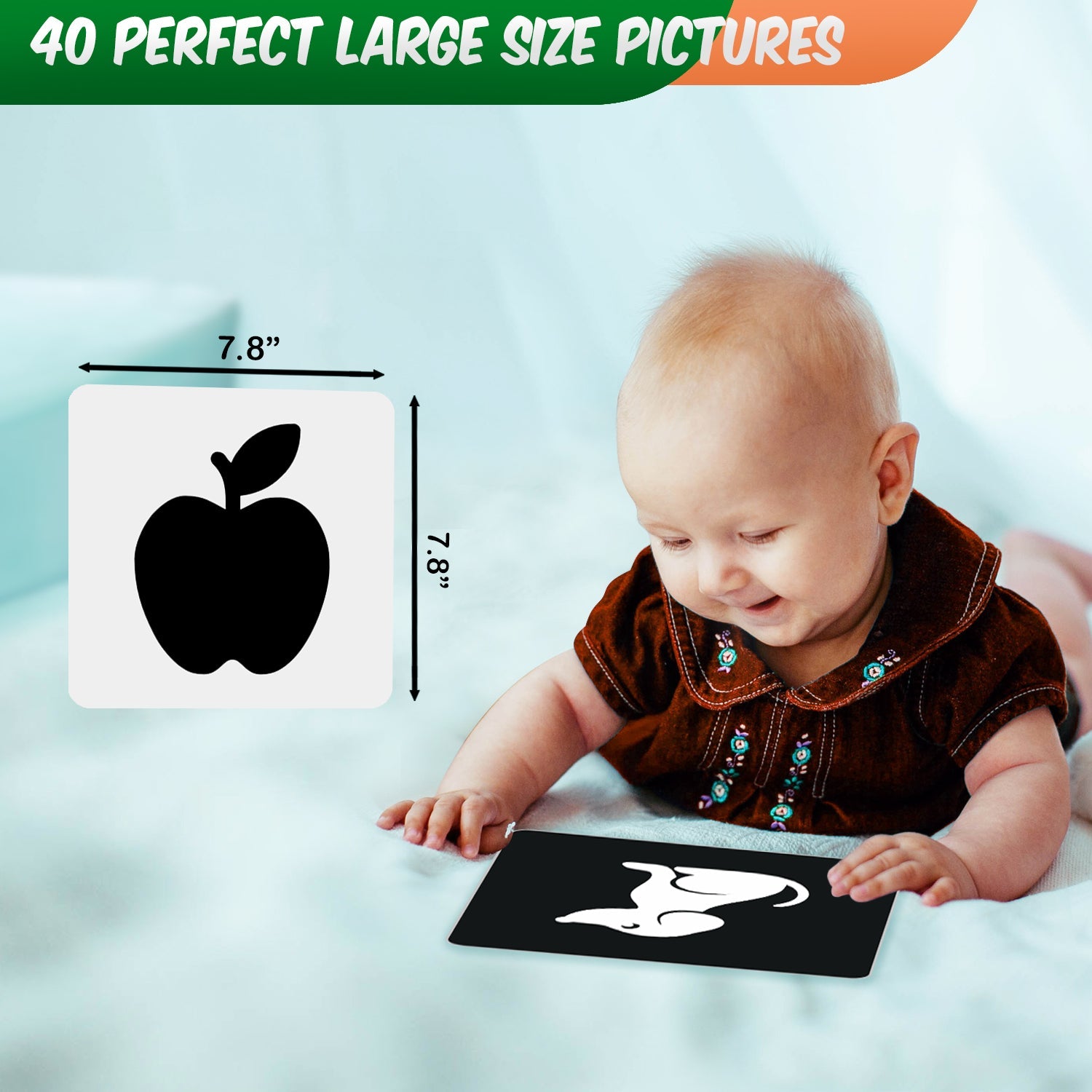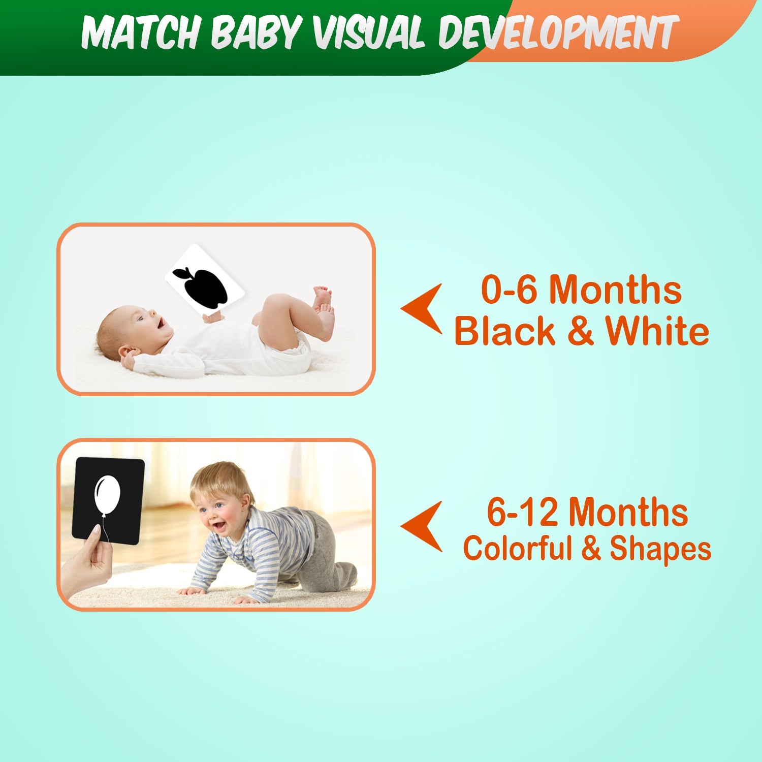 The cards are designed with bigger size, which is perfect for young baby as their eyesight is not fully developed. Bigger cards make it easy for baby to see and track. It trains baby’s focus and goal finding for both eyes.
