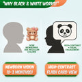 Studies show that the retina of a newborn baby isn’t fully developed, high contrast, black and white images are a great way to help develop their eyesight and stimulate baby’s brain development.