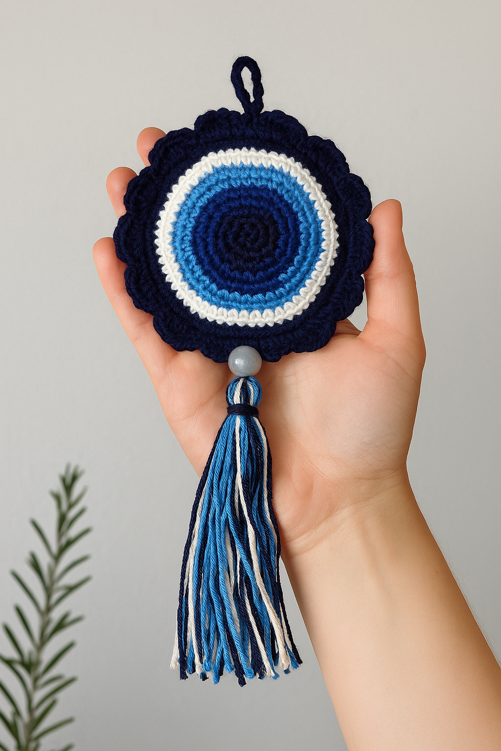 Add a touch of charm and protection to your space with the Clapjoy Handmade Crochet Evil Eye Hanging. Thoughtfully crafted with premium-quality yarn, this beautiful wall decor piece not only enhances your home or office aesthetic but also serves as a traditional symbol to ward off negative energy. Its vibrant colors and intricate crochet design make it a perfect gift for housewarmings, festive occasions, or simply to bring positive vibes to your surroundings.