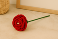 Transform any space with this exquisite handcrafted crochet rose, meticulously created with deep red yarn and adorned with realistic green leaves and stem. Each delicate petal is carefully crafted to capture the timeless beauty of a blooming rose, making it a perfect永lasting alternative to fresh flowers. The intricate stitching showcases remarkable attention to detail, from the layered petals that spiral inward to the textured leaves that complete this botanical masterpiece. This decorative piece adds a romantic touch to home decor, makes a thoughtful gift, or serves as a unique accent for special occasions. Unlike real roses, this artisanal creation maintains its vibrant color and perfect form year-round, requiring no maintenance while continuing to charm with its handmade appeal.