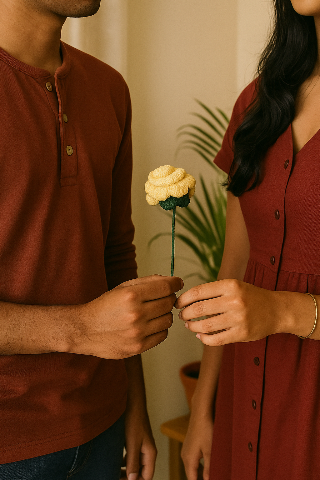 Add a touch of everlasting beauty to your home or gift your loved ones a unique keepsake with this handmade crochet yellow rose. Carefully crafted with high-quality yarn, this delicate yet durable flower features a realistic design, a sturdy stem, and intricate detailing. Whether for Valentine’s Day, anniversaries, birthdays, or home décor, this handcrafted bloom is a perfect choice that never fades.