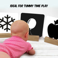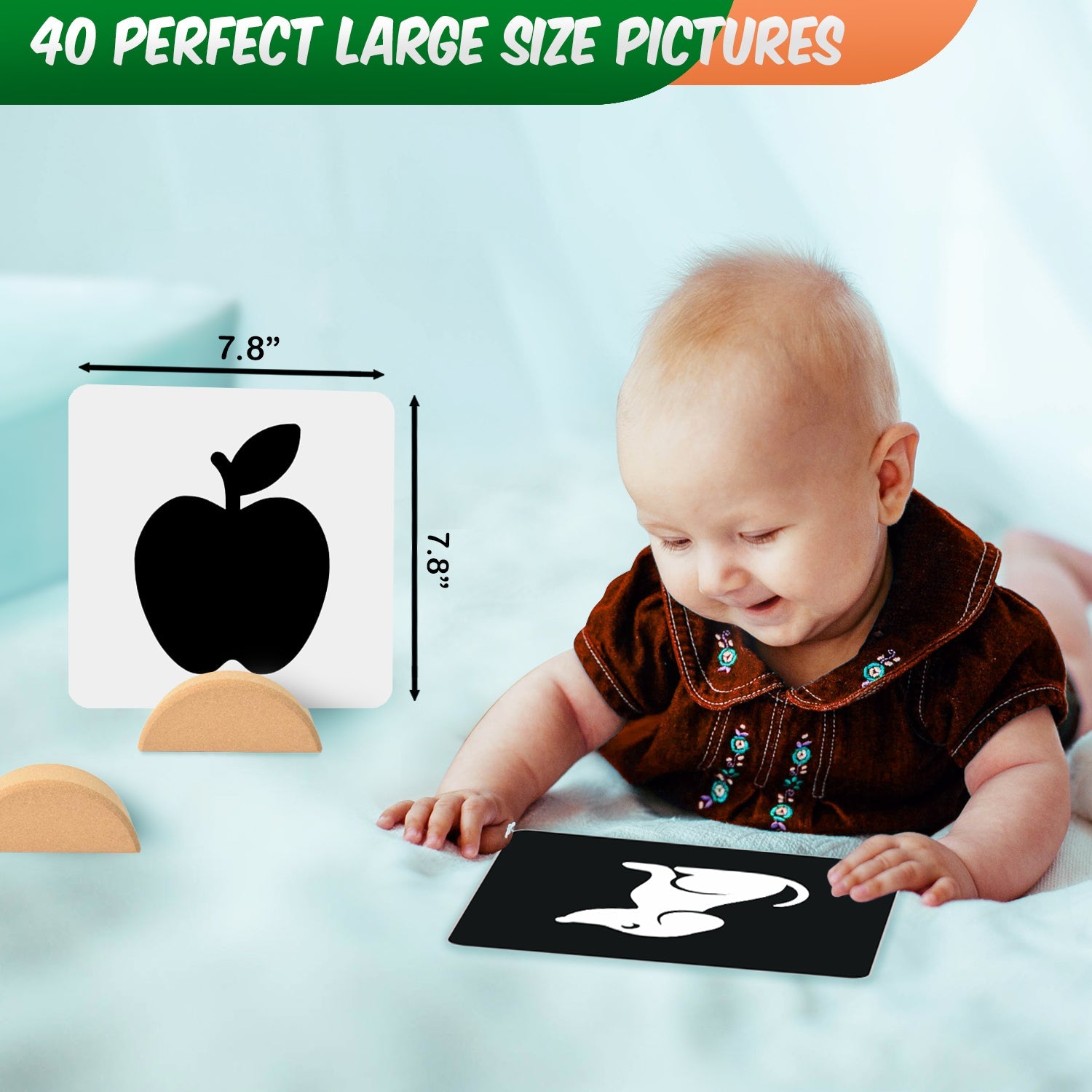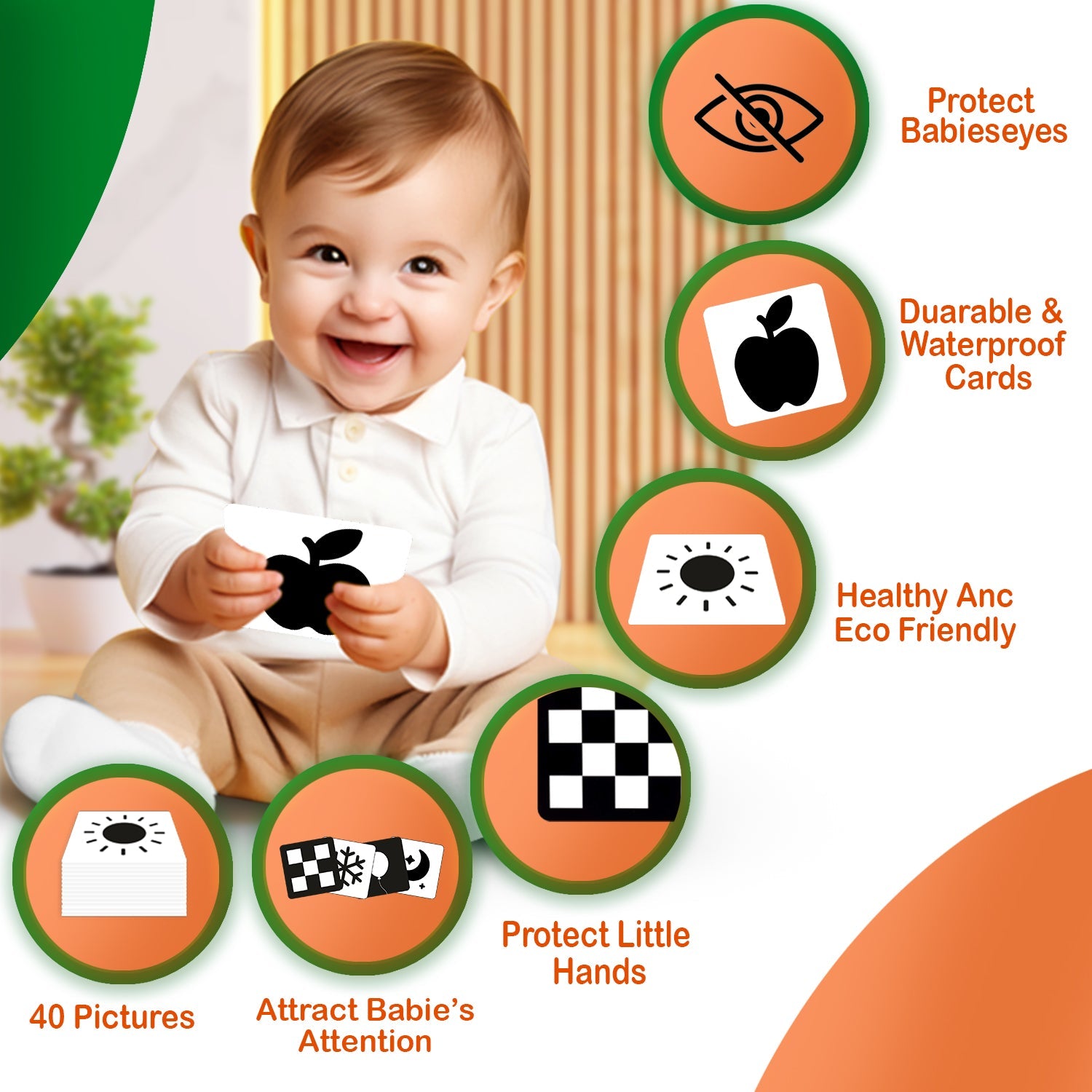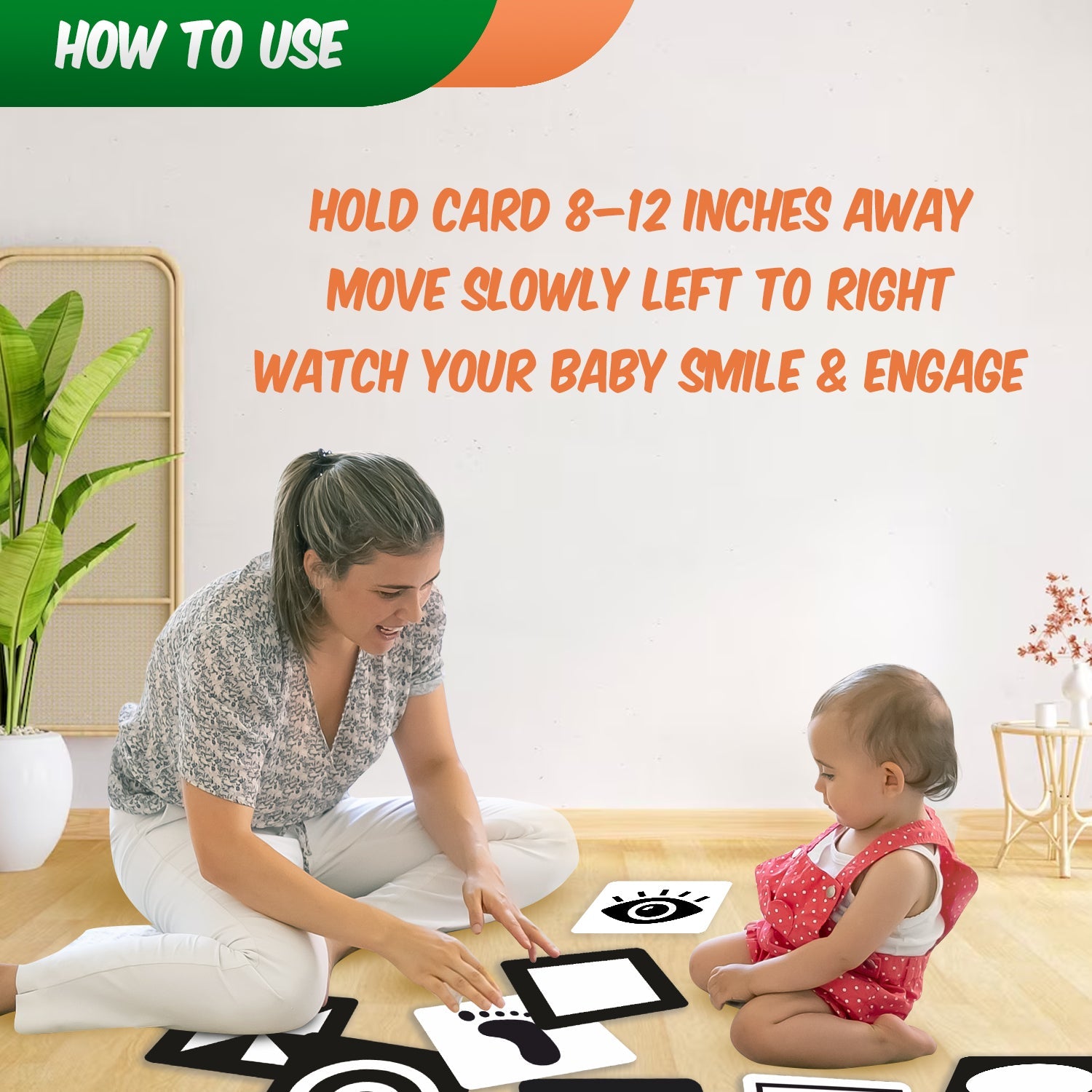This premium set includes 20 thoughtfully designed high-contrast flash cards, featuring mesmerizing black-and-white patterns, bold geometric shapes, and unique illustrations tailored to capture your baby's attention. Perfectly sized for little hands, these cards are lightweight and compact flash cards for babies, ensuring ease of use at home, during tummy time, or on the go. They're an ideal choice for parents who value travel-friendly baby flash cards.