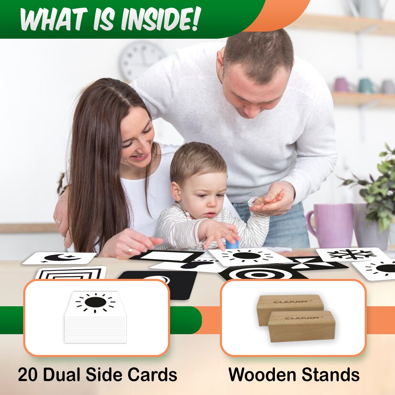 Newborns have limited visual acuity, and their developing eyes respond best to high-contrast images. Clapjoy's Black and White Flash Cards leverage this principle to promote visual stimulation for babies, helping them focus, track, and differentiate shapes and patterns. By engaging your baby with these visually striking cards, you're laying the foundation for early brain development and building their cognitive abilities, step by step.