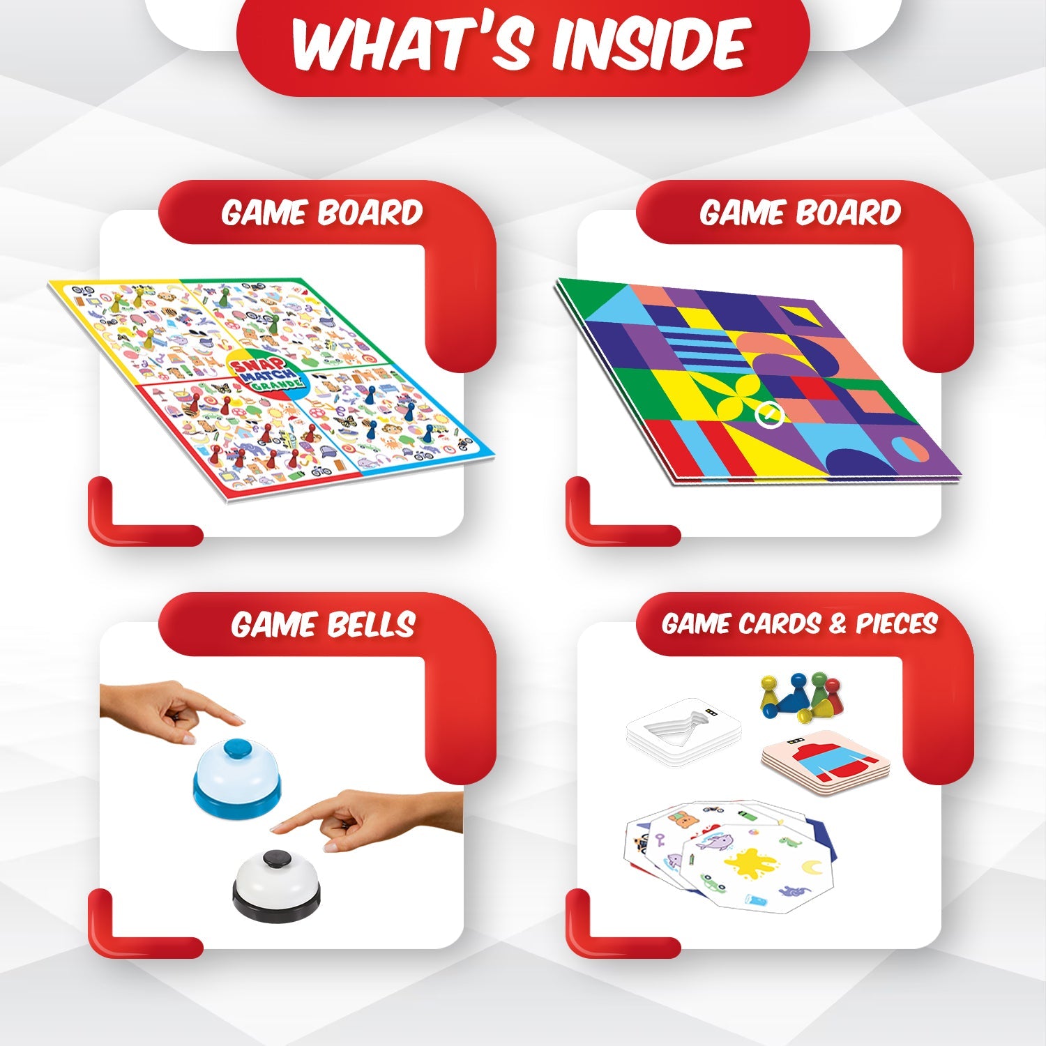 🚗 PORTABLE, EDUCATIONAL & FAMILY-FRIENDLY: Compact and lightweight, this combo is perfect for indoor entertainment, family game nights, travel trips, and party games. It offers a perfect blend of fun and learning, fostering creativity, teamwork, patience, and observation skills. Whether it's a weekend gathering or a classroom activity, the Pair Master & Snap Match Grande Combo promises hours of screen-free, multi-generational fun.