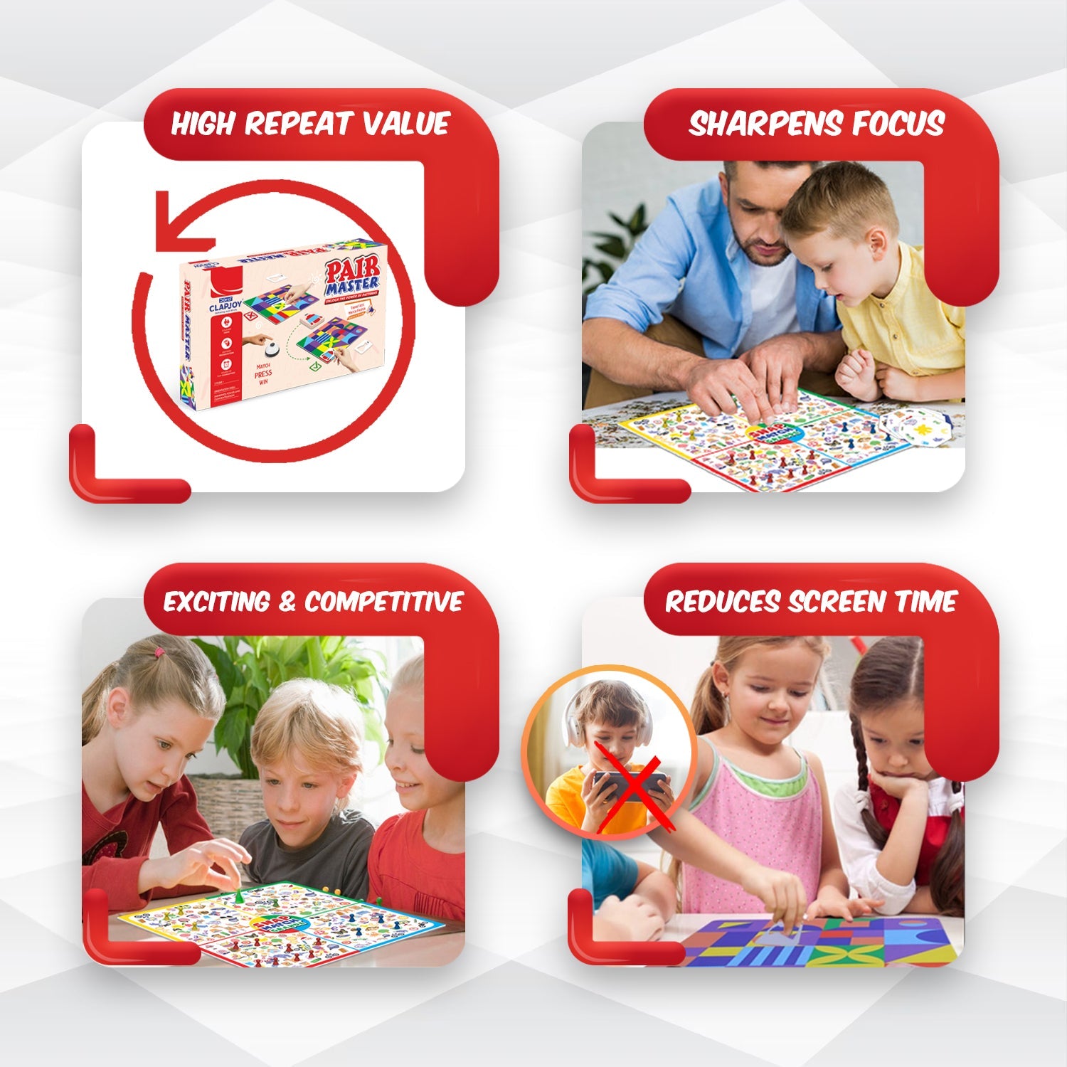 🎨 2-IN-1 CARD GAME COMBO FOR KIDS & FAMILIES: Discover double the fun with Clapjoy’s Pair Master and Snap Match Grande Combo — an exciting pair of memory, matching, and reflex games designed to entertain and educate. Whether it's matching shapes and clothes or racing to spot symbols, this combo keeps kids aged 3+ actively engaged while boosting focus, memory, and observation skills in a fun, playful setting perfect for family nights and playdates.