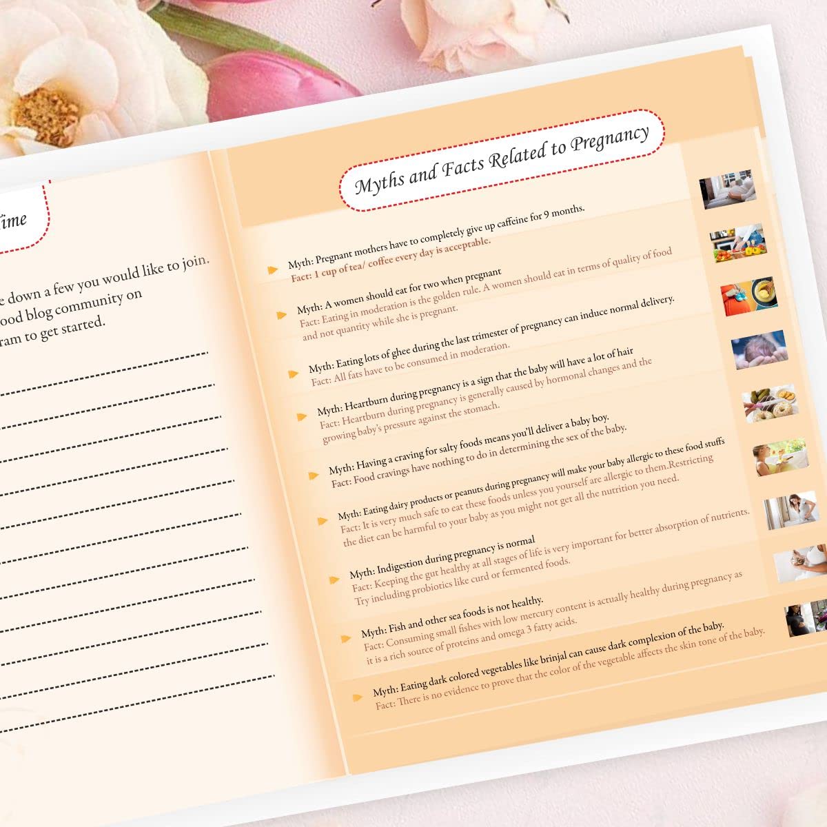 Holistic Support: Benefit from suggested monthly diet charts and exercise tips to maintain a healthy pregnancy. The journal also addresses common myths about pregnancy and includes affirmations to uplift and encourage you.