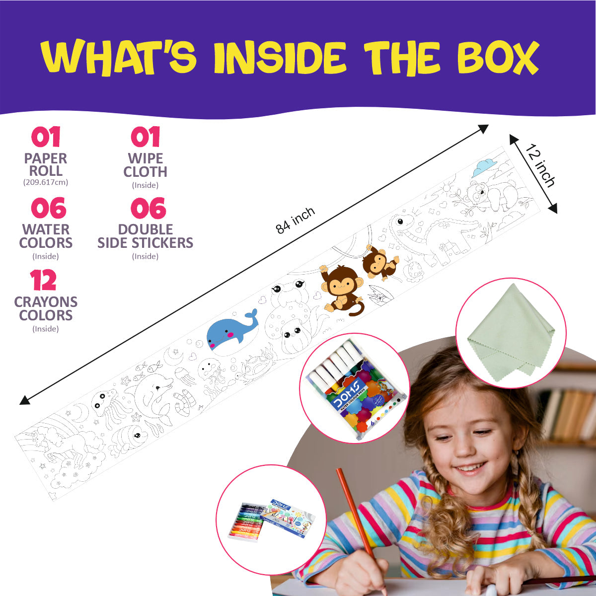 Hands-On Learning: This drawing roll offers an educational experience by blending color activities with interactive storytelling. It’s a fantastic way for children to develop motor skills and foster early reading abilities.