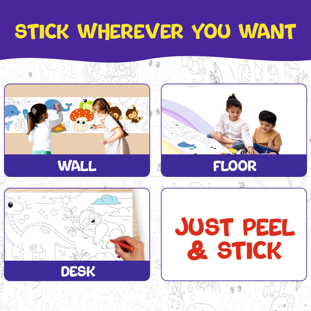 Quality Art Roll: Made from high-quality materials, the roll is designed for easy use. Children can color directly on the roll while it’s on the floor, or easily stick it to walls without causing damage.